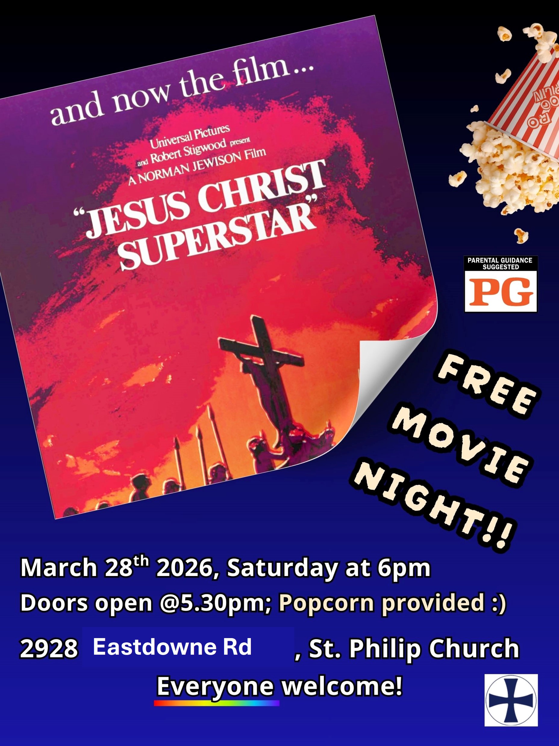 As we approach the end of Lent and prepare for Palm Sunday, Holy Week and Easter,, we invite you to watch Jesus Christ Superstar (1973) with us. We'll have the movie, the popcorn and homemade tea - all we need is you!